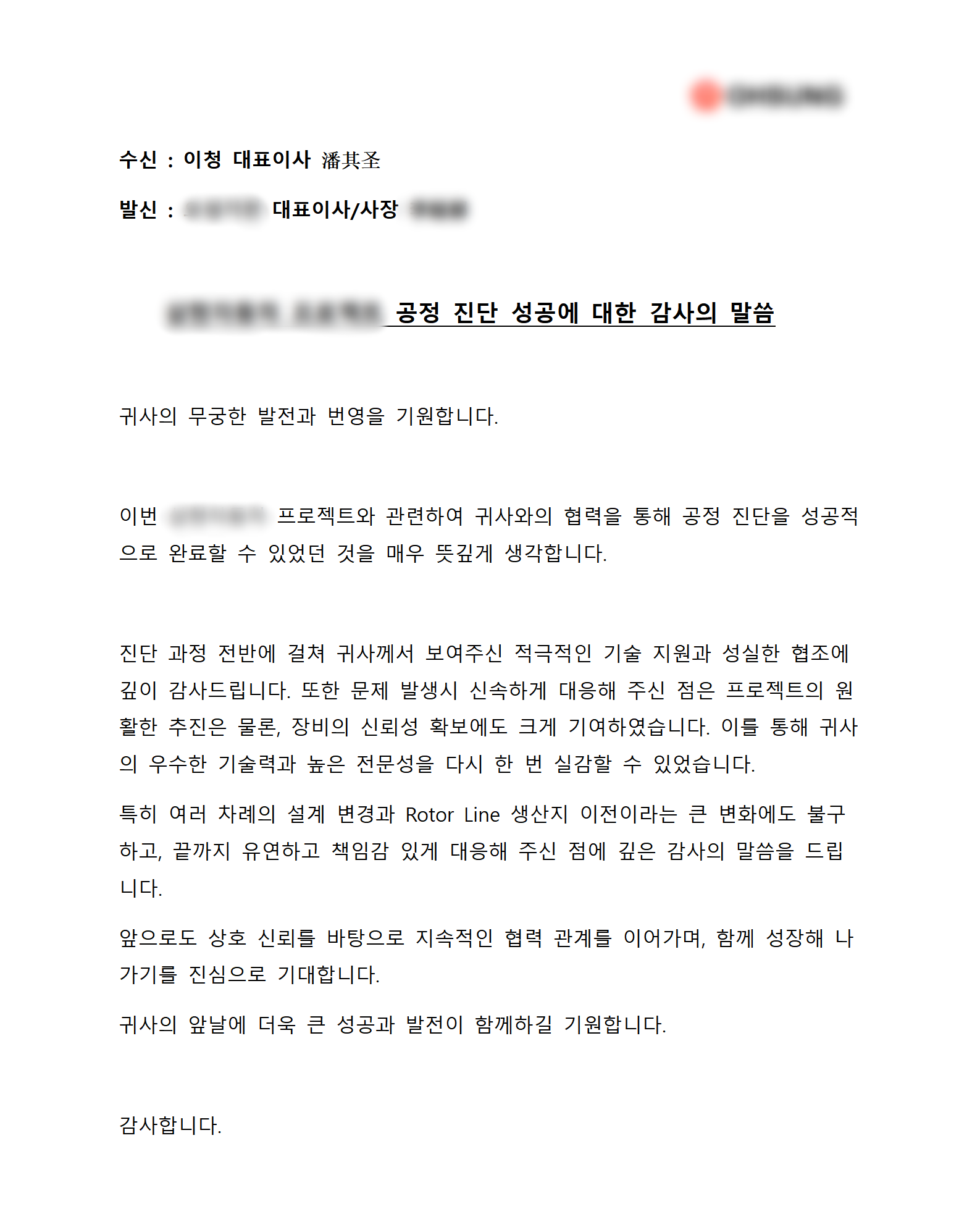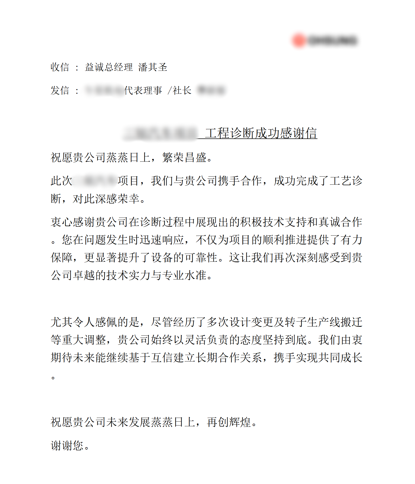 近日,益诚公司为某韩国知名客户量身打造的汽车马达自动化生产线项目取得重要阶段性成果,顺利完成核心阶段的全面工艺诊断工作。在该项目执行期间,益诚团队凭借高度定制化的解决方案、卓越的专业能力与出色的项目表现,赢得了客户的高度认可,喜获该客户方发出的官方书面感谢信。