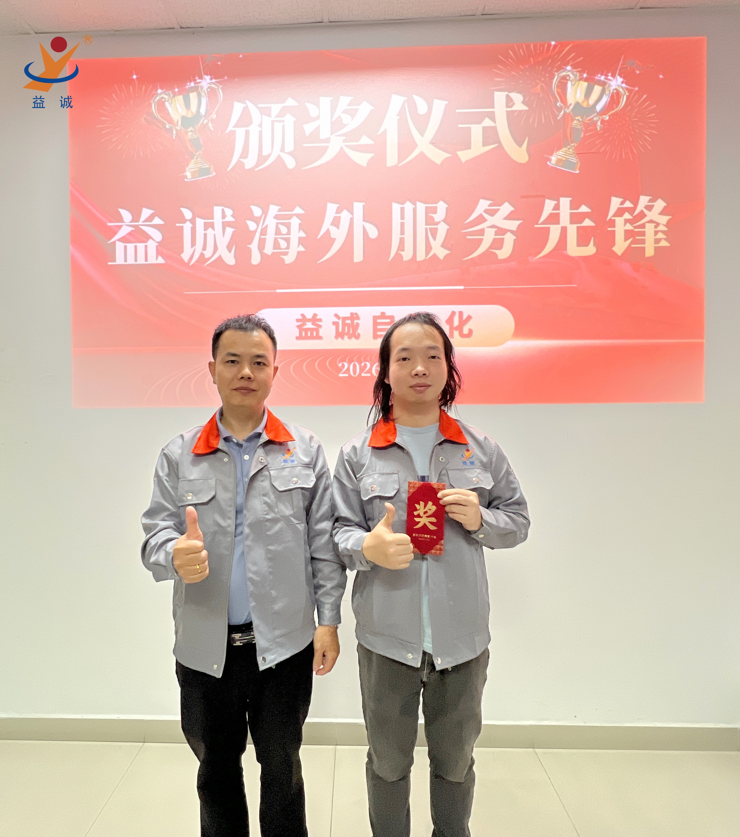 潘总经理表示:“你们远渡重洋,以专业服务客户的身影,正是益诚人服务精神的生动写照!你们用行动深刻诠释了益诚自动化的服务精神——客户至上、使命必达,以专业与勇气书写了益诚跨国服务的壮丽篇章。我坚信,在优秀益诚人的齐心协力下,益诚在全球化服务的征程中必将再谱华章、再创辉煌!”